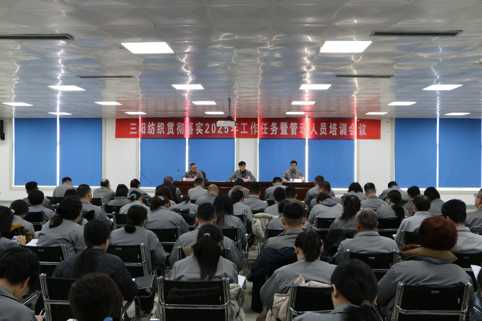 為全面貫徹落實集團副總經理、公司董事長總經理張堯宗同志在公司二〇二四年度總結表彰暨二〇二五年工作會議上的講話精神,全面完成2025年各項工作任務,進一步統一各級管理人員的思想,堅定發展信心,鼓足工作干勁,端正工作態度,提高工作效率,凝聚發展力量,加快打造起國內領先的高端紡織產業基地。3月4日,公司貫徹落實2025年工作任務暨管理人員培訓會議在公司辦公樓三樓會議室召開。會議由公司副總經理兼工會主席李小兵主持,公司經理層、中層以上管理人員、各車間基層管理人員代表、各部室行管工程師共計102人參加了本次會議。
