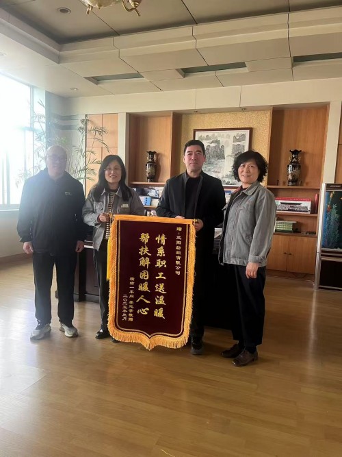 3月24日,精紡一車間員工李志學手持一面鮮紅的錦旗,上面印著“情系職工送溫暖,幫扶解困暖人心”的金色大字,滿懷感激之情送到公司。